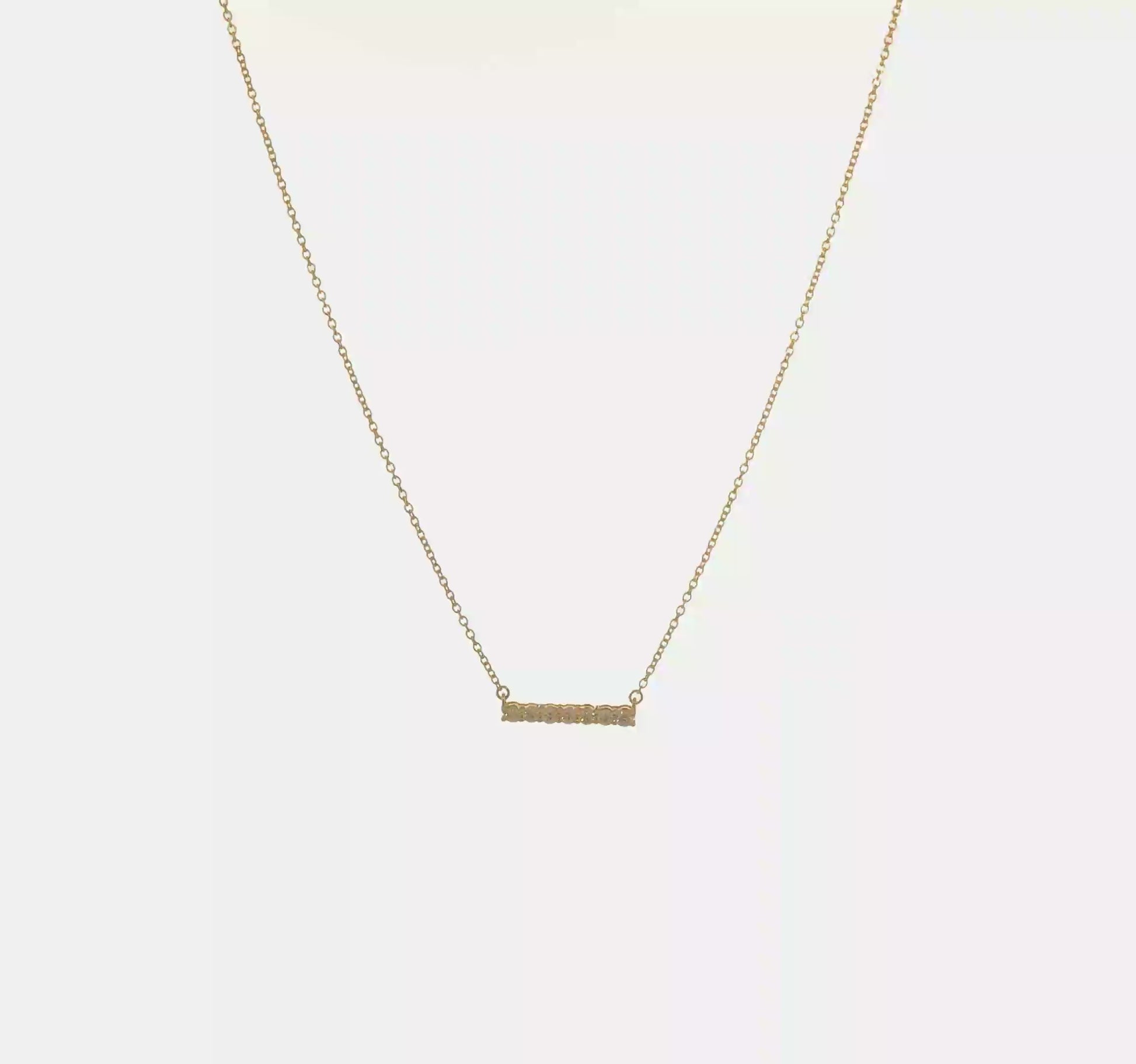 The Diamond Bar Necklace is a modern essential with timeless elegance. Crafted in 14k gold, it features a row of brilliant round-cut diamonds set in a sleek horizontal bar design. Perfect for layering or wearing solo, this piece offers a refined sparkle that transitions effortlessly from day to night.