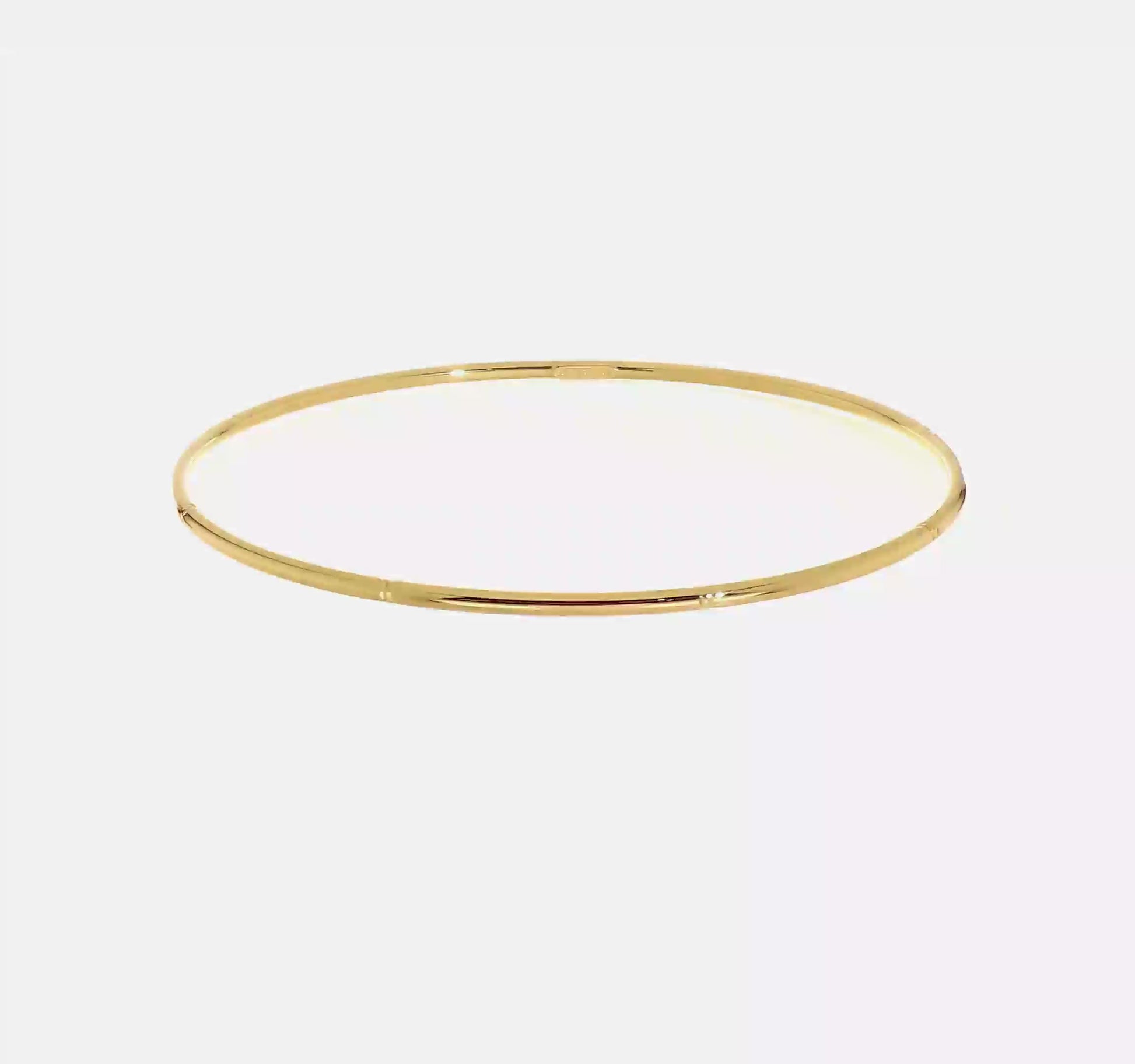 Polished and effortlessly chic, this 14k gold bangle is the definition of understated elegance. Its slim silhouette makes it perfect for stacking, yet its radiant shine stands beautifully on its own. A timeless piece designed to bring subtle sparkle and everyday confidence to your style.
